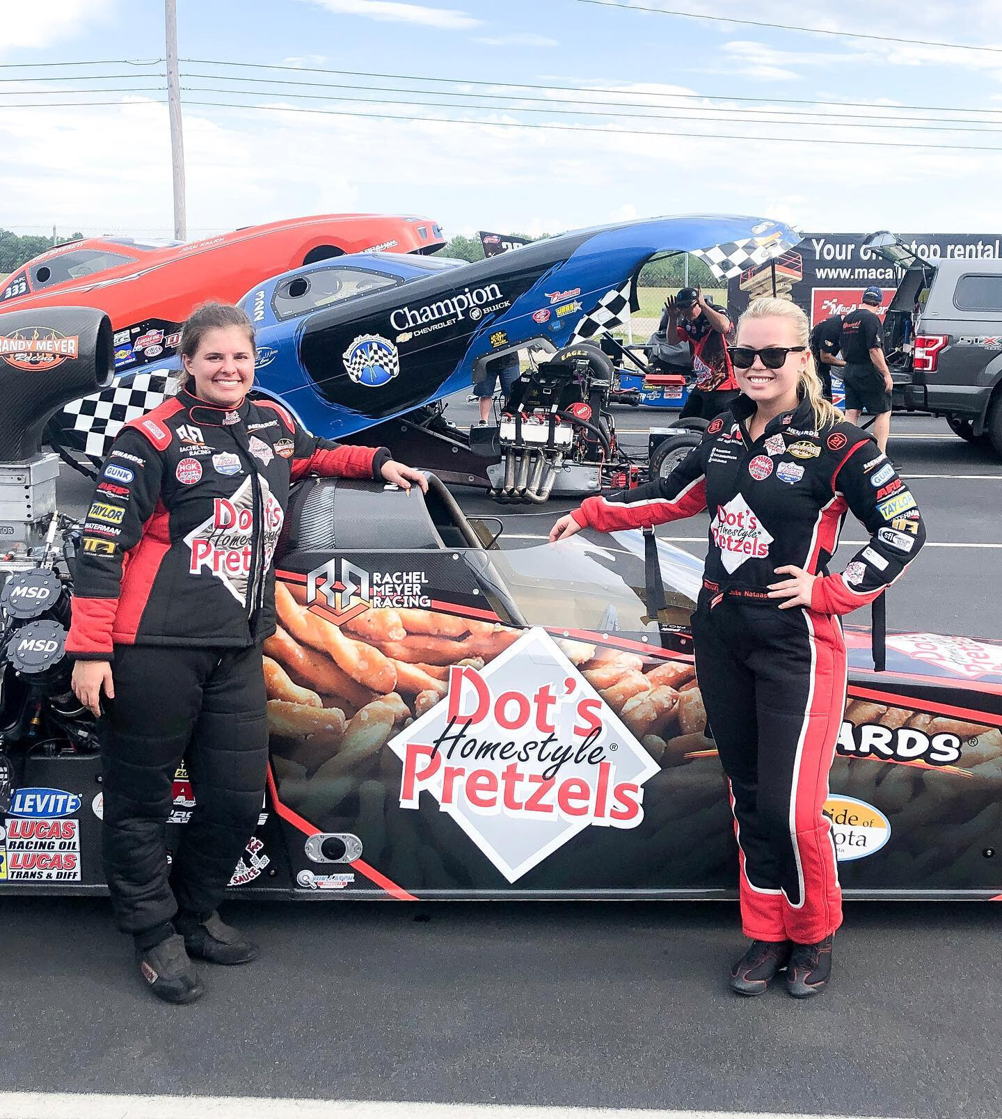 Rachel and the Randy Meyer Racing Team competed at the Lucas Oil Drag Racing Series regional event in Indianapolis, Indiana this past weekend and walked away with the top qualifier and runner-up finish after defeating Jared Dreher and Chris Demke in eliminations in her new Menards/Dot’s Pretzels dragster built by Copeland Race Cars.